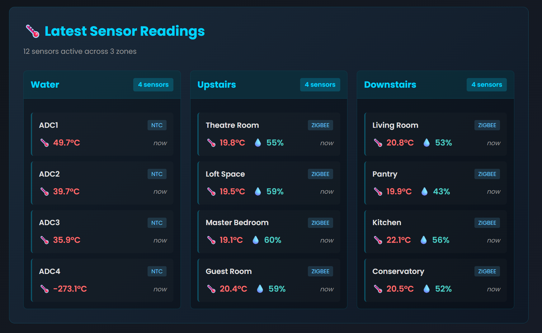 For out-of-the-box installs, Octopus does not expose heat pump flow or return temperatures via their API. The Cosy Hub includes four ADC inputs, one of which is used for hot water cylinder sensing.